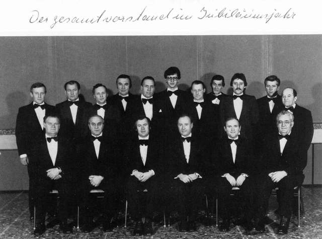 Im März 1977 gab Herr Hans Schork den Vorsitz ab. Die Generalversammlung ernannte Herrn Schork zum Ehrenvorsitzenden und